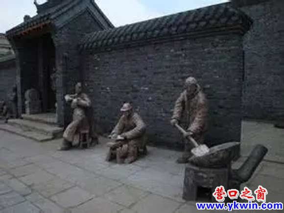 不止一次地琢磨那幅老照片,穿著厚厚棉袍的苦力,拉著沉重的大豆麻袋在結(jié)了冰的遼河上走,那姿勢(shì),像是伏爾加河上的纖夫,也像是蜷縮在屋角下的老鄉(xiāng),親切而讓人傷感。遼河的夏天,是繁忙的,所謂的舳艫云集,千帆競(jìng)發(fā),那該就是老渡口每天漁船歸岸時(shí)的場(chǎng)面,叫賣聲、哄搶聲、吆喝聲,夾著海浪與漁船的撞擊聲,熱鬧得如同被拋上岸邊籮筐里的魚蝦,只是它們只顧蹦跳著逃命,卻發(fā)不出聲音,像極了我腦子里的那段想象。還有那尊影壁墻下的雕塑,拎著行李箱包的長(zhǎng)袍商人,引領(lǐng)幾個(gè)扛著麻袋的小工,風(fēng)塵仆仆,像是從那個(gè)時(shí)空里穿越而來(lái),全然沒(méi)有理會(huì)百年后的人們看著他們的心情。