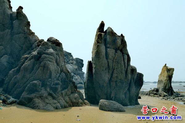 在營口市蓋州北海的大海邊,有一個國家級海蝕地貌地址公園。這是經(jīng)過十八億年大自然的鬼斧神工而造就的神奇景觀。在綿延兩千多米的海岸線上,岸邊的巖石由于海水的沖刷和風(fēng)雨侵蝕,而形成了各種各樣、千奇百怪的形態(tài)。如金龜出洞、大士聽潮、大象歸山、雄獅鎮(zhèn)海、龍首賜福、夫妻石等眾多唯妙唯俏的單體景觀。人們俗稱此處為“龍宮一條街”。