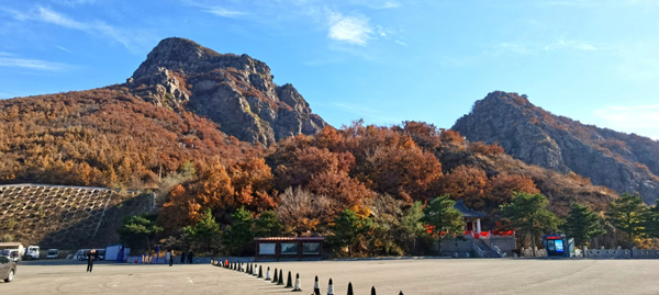 赤山位于營口市蓋州萬福鎮(zhèn),海拔891.1米,五座石峰有如人的五指,并排而立直插云天,因山峰巖石呈紅色而名赤山。赤山早在唐初就是遼東名山之一,清代時(shí)成為遼南道教名山。赤山以峰奇、洞異、泉清、石怪、寺古而聞名。日前,同友人一起登山游覽,真是好一派熱烈的金秋景色。