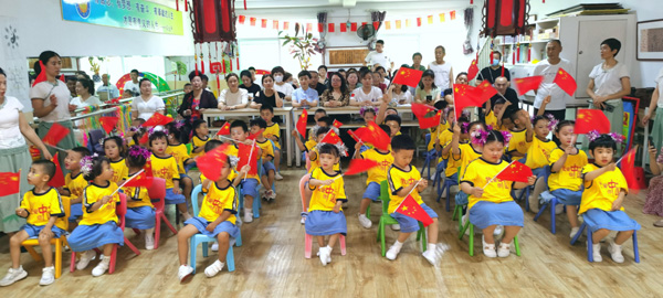 小朋友、老師和家長(zhǎng)們共唱《沒有共產(chǎn)黨就沒有新中國(guó)》。