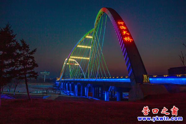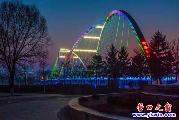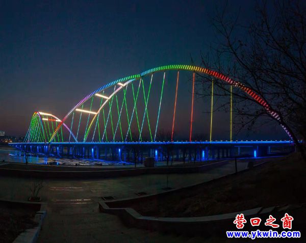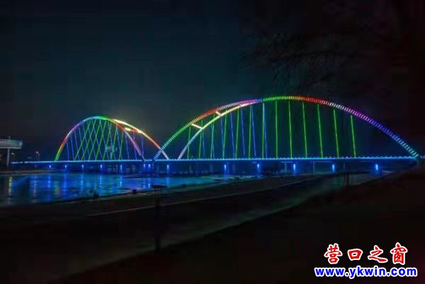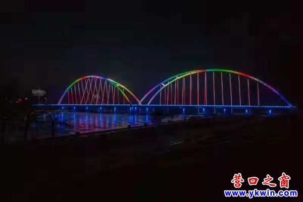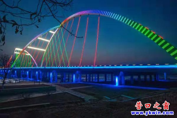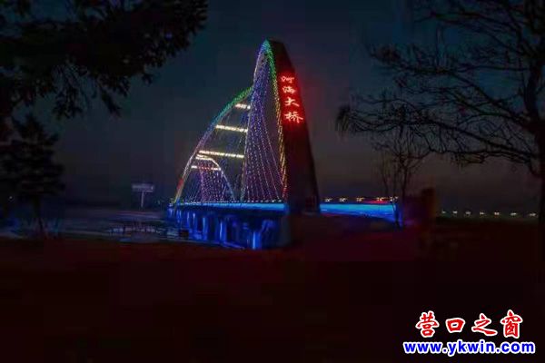 (營口之窗“方寸天地”)夜暮下熊岳河海大橋流光溢彩