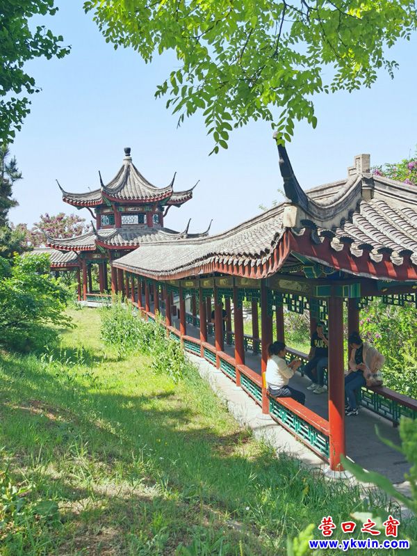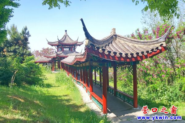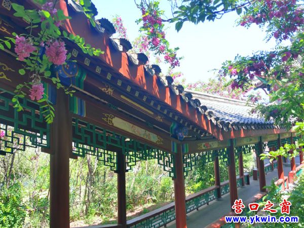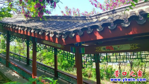 營口鲅魚圈區(qū)青龍山公園西側(cè)山麓,有一座百米觀景長廊。長廊綠瓦紅柱,拱脊飛檐,古香古色,蜿蜒曲折,甚是浪漫大氣。身處長廊馨遠(yuǎn)亭中,近觀青龍山美景如畫,遠(yuǎn)望大海波濤浩淼;鲅魚圈城區(qū)之繁盛和鲅魚圈港口之壯觀,盡收眼底。