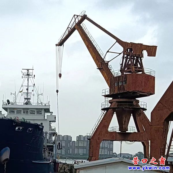 (六)屹立于遼河大橋下的塔吊,別看它銹跡斑斑,卻還能用。這不,正在大船塢上干活呢!