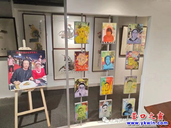 展架上是戚弘?yún)⒓恿x展為智障兒童畫的新作品