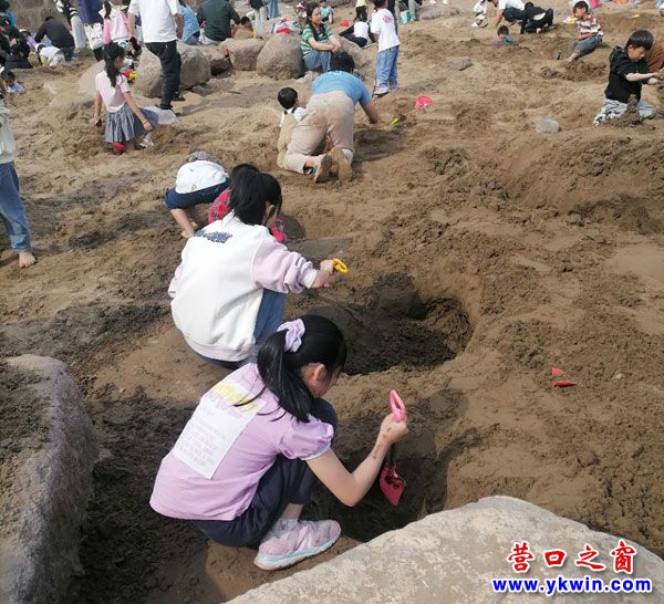沙灘一片海之邊,群幼挖坑神態(tài)專。
