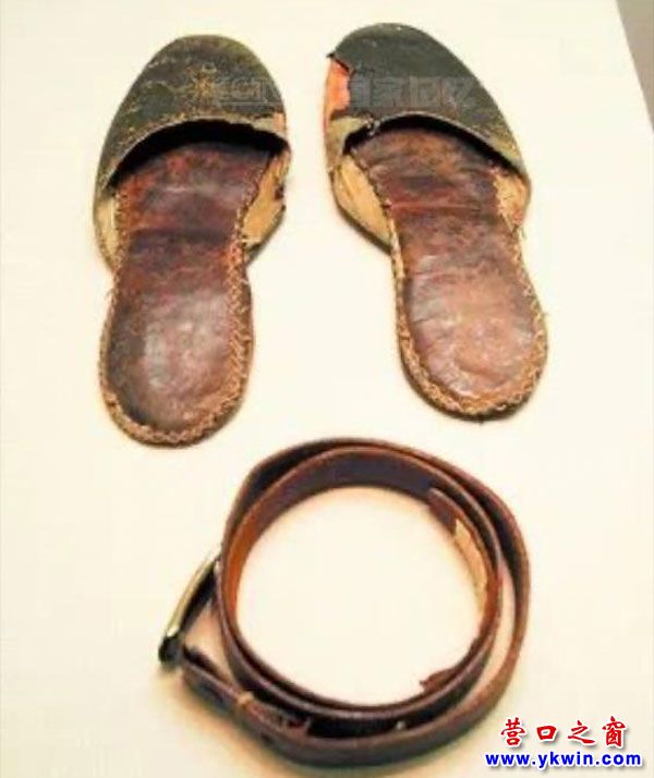 毛澤東的皮拖鞋,布鞋是大柵欄內(nèi)聯(lián)升鞋店做的,鞋沿囗已換過,鞋底也釘過。