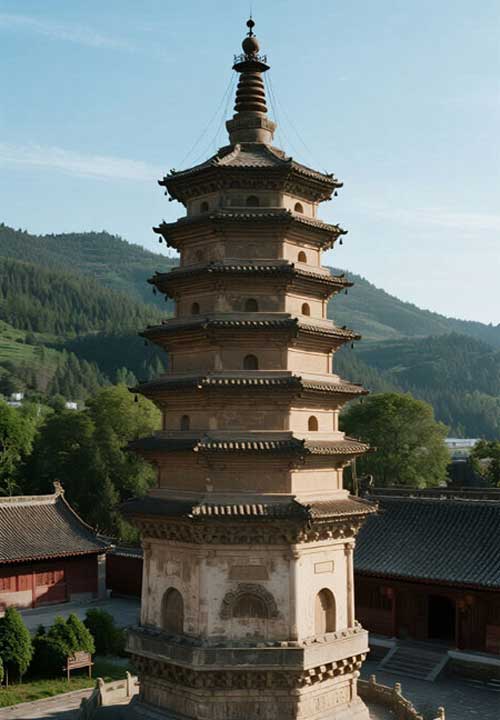 江山尊此崇真善,七級浮屠鑒塔雕。