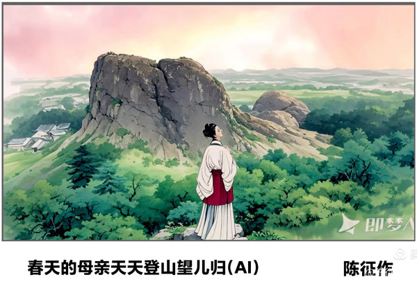 母親日復(fù)一日、年復(fù)一年地登上山頭,遙望大海,呼喚兒子歸來(lái)。春去秋來(lái),風(fēng)雨無(wú)阻,她的眼淚哭干了,頭發(fā)也白了,最終化作一尊石像,永遠(yuǎn)佇立在山巔。她的身軀化成了這座孤峰,后人便稱之為“望兒山”。