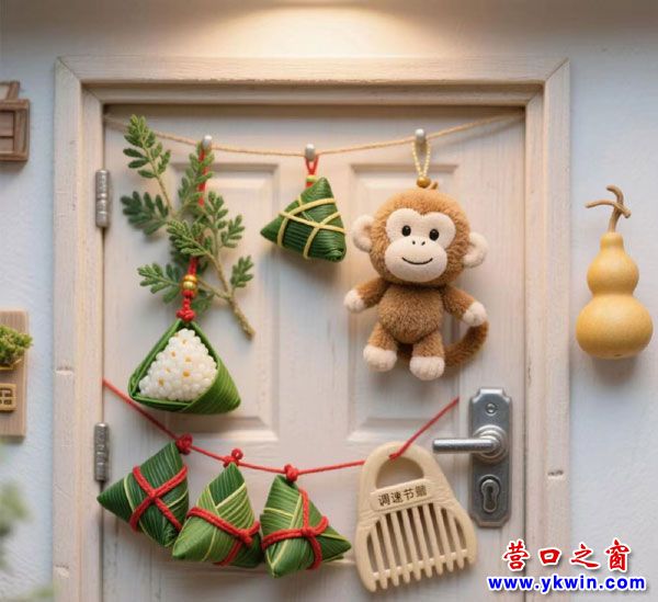 門庭之飾,亦蘊玄機。篦帚雙懸,篦盡邪祟;繡桃高掛,桃逃災殃。布猴執(zhí)棒,守宅門而鎮(zhèn)魍魎;彩粽垂金,祈財運以納禎祥。葫蘆倒懸,諧音福祿;彩線纏腕,色映霞光。虎頭繡褓,護稚子以安康;艾葉盈門,祛瘟神而辟穢。一物一象,皆含吉意;一俗一儀,盡訴衷腸。