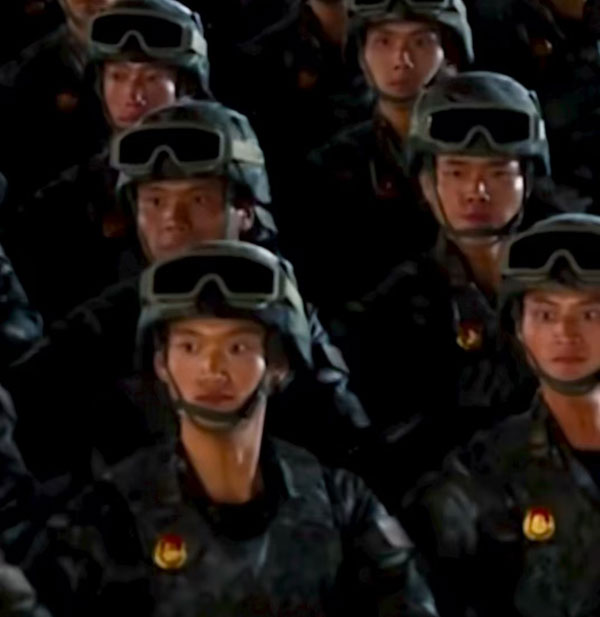 步履鏗鏘驚廣宇,軍威浩蕩震長天。