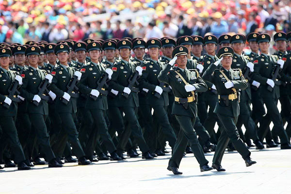 鳴鐘,時(shí)惕厲,強(qiáng)權(quán)霸道,神社陰風(fēng)。展利刃寒光,勁旅新容。淬煉三軍健武,風(fēng)雷動(dòng),海陸長(zhǎng)空。凝魂魄,閱兵驚世,萬(wàn)眾仰英雄。