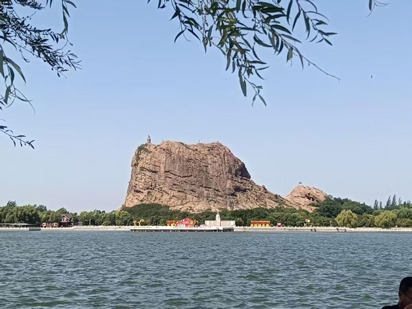 熊岳城東聳翠巒,孤峰兀立水云間。