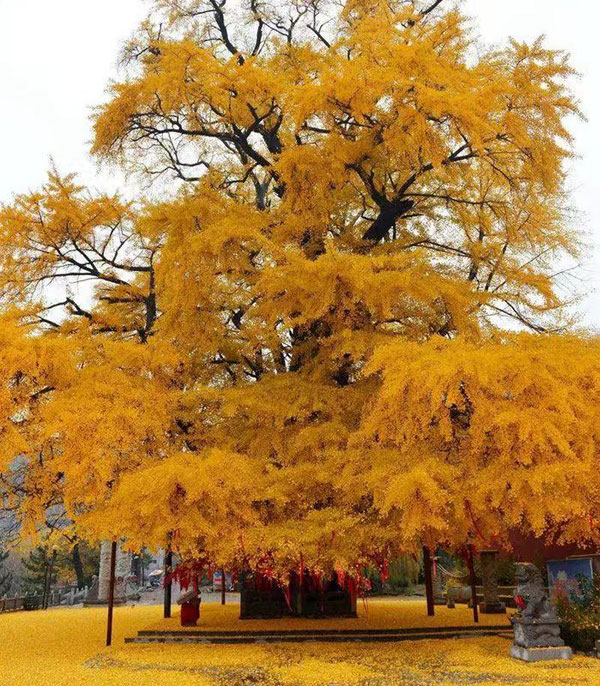 注:鴨腳。銀杏的典型古稱。因銀杏葉片呈扇形,有明顯二叉狀葉脈,狀如鴨子腳掌而得名。