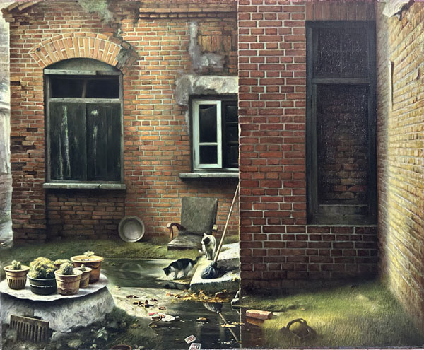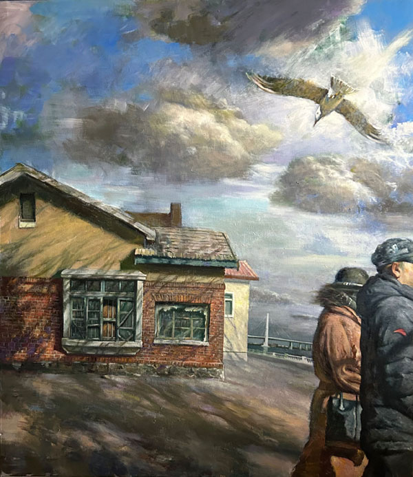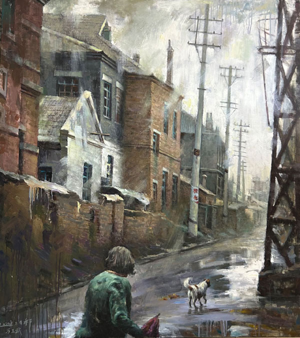 油畫《風(fēng)中的承諾,老市區(qū)》