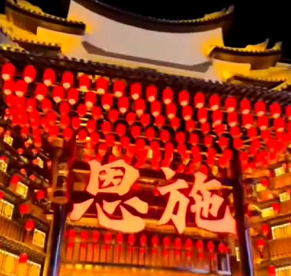 真是恩施在眼前,山路在天邊啊,但不管山路多么難行,路途多么遙遠(yuǎn),我們堅(jiān)信人定勝天,五個(gè)多小時(shí)后,直到連綿起伏,層巒疊嶂的鄂西群山突然退讓,恩施如一顆靈秀的明珠,靜靜地躺在武陵山的臂彎里。四面環(huán)抱的峰巒為它筑起天然的城墻,而城中已是華燈初上。放下行囊,我們直奔恩施城中最具特色的土家族古城女兒城。