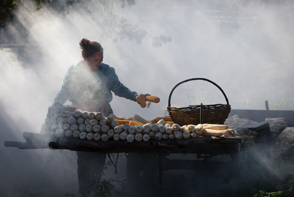 喜獲碩果歸家晚,笑把豐年囤里藏。