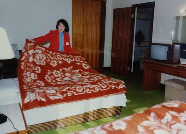 營口賓館工作人員整理整理打掃客房衛(wèi)生。