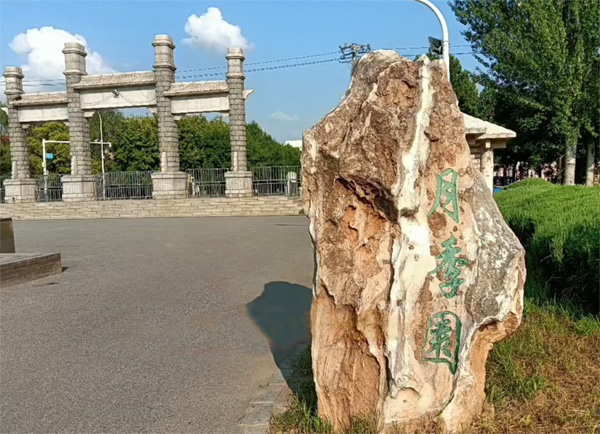 月季搖紅神濟(jì)美,年輪擁翠氣流芳。