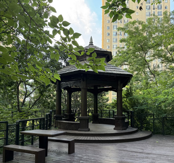 退休后大部分時間住在大連,先是助力小女兒減輕其家務(wù)壓力?,F(xiàn)在小孩子們長成了大孩子,我基本處于賦閑狀態(tài),多了許多個人活動空間。除了參加社區(qū)組織的一些文娛活動外,我每天的功課是走步和爬山。女兒家的小區(qū)建在半山腰,因地制宜種了許多花花草草。其間加上小橋流水、亭臺樓閣、沉降廣場和游樂場的點綴,更是讓人感受到獨特創(chuàng)意的精美與原始自然的粗曠無縫融合的魅力。白天蟬鳴聲聲,傍晚涼風(fēng)陣陣,喜鵲的倩影又時不時從頭頂掠過,好一派故園風(fēng)光??!