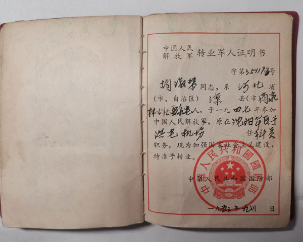 媽媽一直珍藏著:轉(zhuǎn)業(yè)軍人證明書;解放獎(jiǎng)?wù)录白C書;抗美援朝獎(jiǎng)?wù)录白C書和華北解放紀(jì)念章,解放東北紀(jì)念章等。還有1948年6月14日的軍裝照。