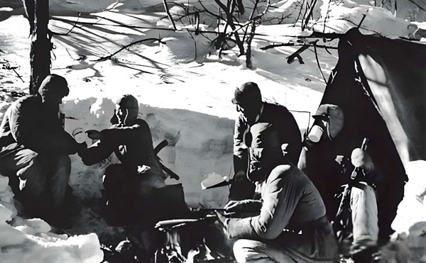 天一亮,所有人就鉆進(jìn)自己挖的掩體里,洞口拿草或松枝蓋好,躲避敵機(jī)空襲。傍晚七點(diǎn)左右部隊(duì)開始運(yùn)動(dòng),凌晨三點(diǎn)停下,抓緊時(shí)間挖掩體、做偽裝,趕在天亮前藏好身形。