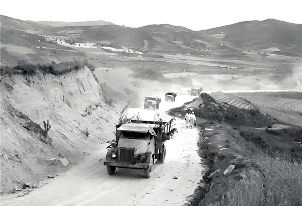 果然,狡猾的敵機(jī)在山邊繞了個(gè)圈又折返回來,對(duì)著可疑區(qū)域又是一輪掃射,這才悻悻離去。等了許久,確認(rèn)安全后,父親按照約定信號(hào)敲擊駕駛室頂,車隊(duì)才繼續(xù)前進(jìn)。這一路,就是這樣躲躲藏藏、停停走走,終于在天亮前將物資送到了目的地。