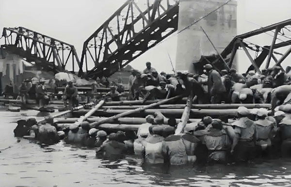 “頂牛過江”——橋梁被炸后,將汽車拆解,用人拉過江,對(duì)岸再重新組裝。這是志愿軍戰(zhàn)士用智慧創(chuàng)造的土辦法。