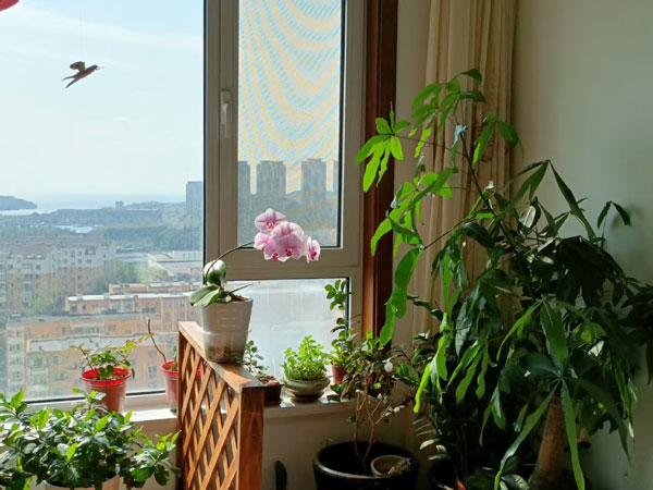 那盆蝴蝶蘭,粉瓣如蝶,總在枝頭蹁躚,把春日的爛漫鎖在花芯里;發(fā)財(cái)樹的葉,永遠(yuǎn)翠綠鮮亮,似把春的生機(jī)潑灑在脈絡(luò)間。還有那懸著的燕兒,似從春的箋頁里飛出,雖不似窗外春燕穿梭柳簾,卻在這一方小天地里,讓春的靈動(dòng)畫意長留。