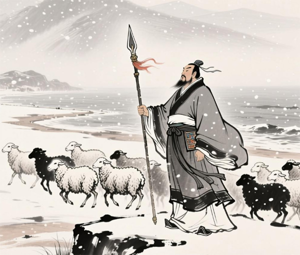 近日重讀《蘇武牧羊》,這首悲壯的歌謠再次在耳畔回響。它低沉、雄渾的曲調(diào)里,蘊(yùn)含著一種穿透時(shí)空的力量,讓人仿佛親見(jiàn)那冰天雪地中的孤傲身影,不禁為之動(dòng)容。