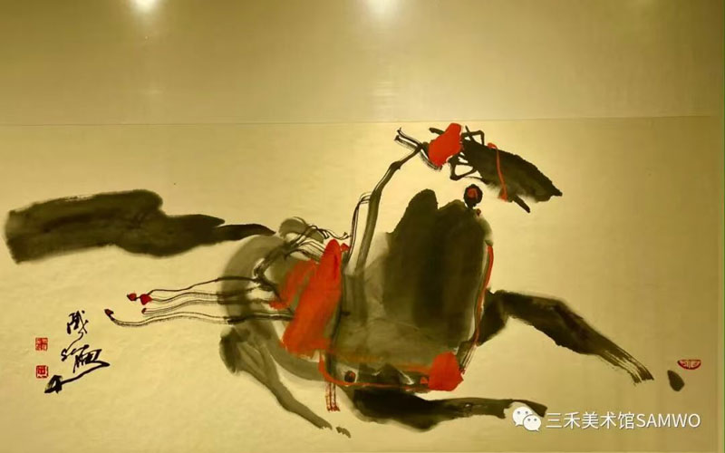 2013年九月,應(yīng)邀在新加坡濱海花園舉辦《總統(tǒng)挑戰(zhàn)》慈善基金之《馬上戚弘》畫展