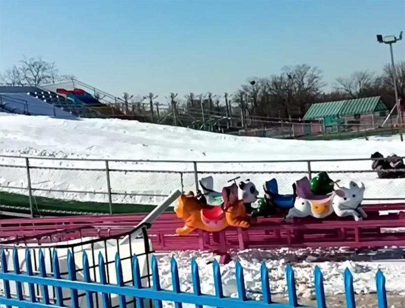 一方平地起高山,滑雪兒童盡笑顏。