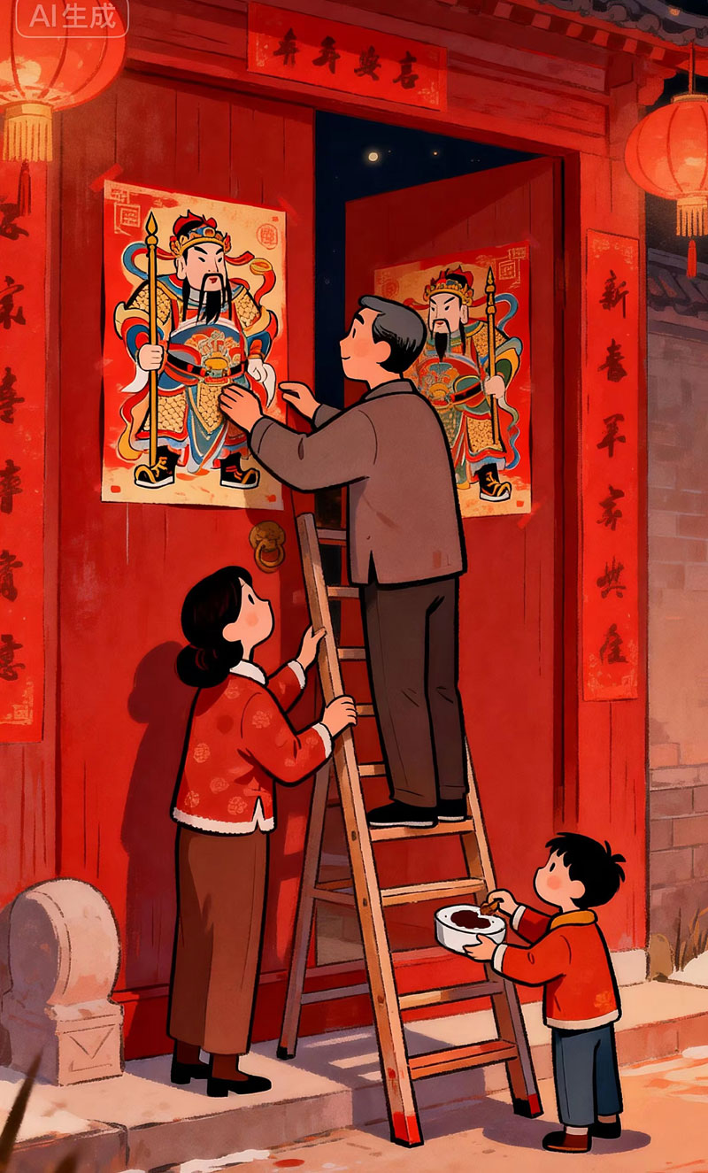 營口之窗·圖文視界 營口AI繪畫:年味 · 貼春聯(lián) 陳征