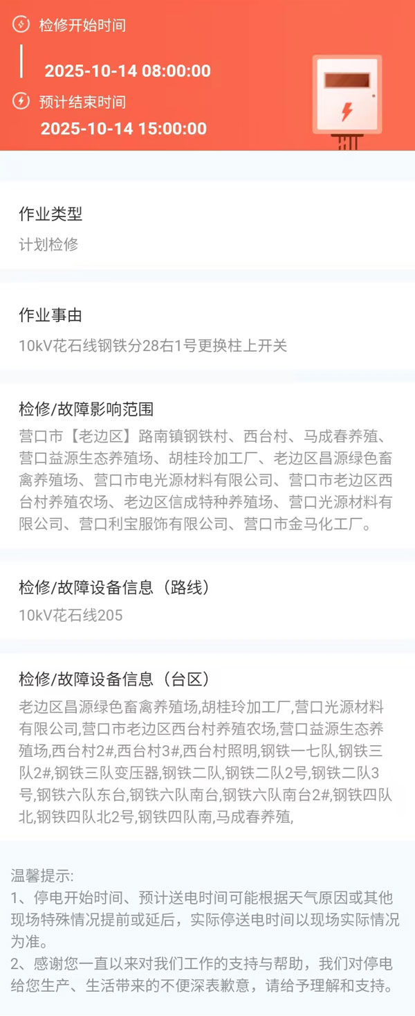 2025年10月14日 老邊區(qū)電網(wǎng)檢修公告 |