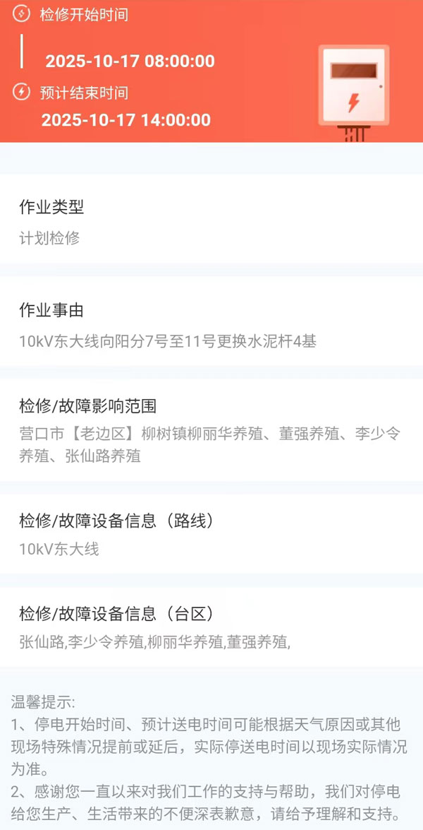 2025年10月17日 老邊區(qū)電網(wǎng)檢修公告 |