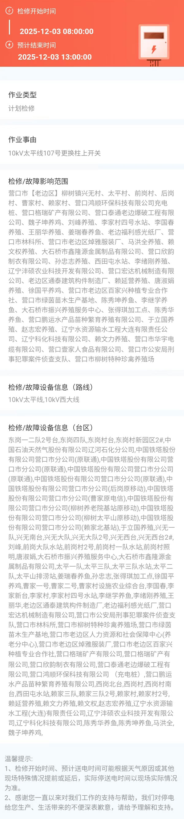 2025年12月03日 老邊區(qū)電網(wǎng)檢修公告 |