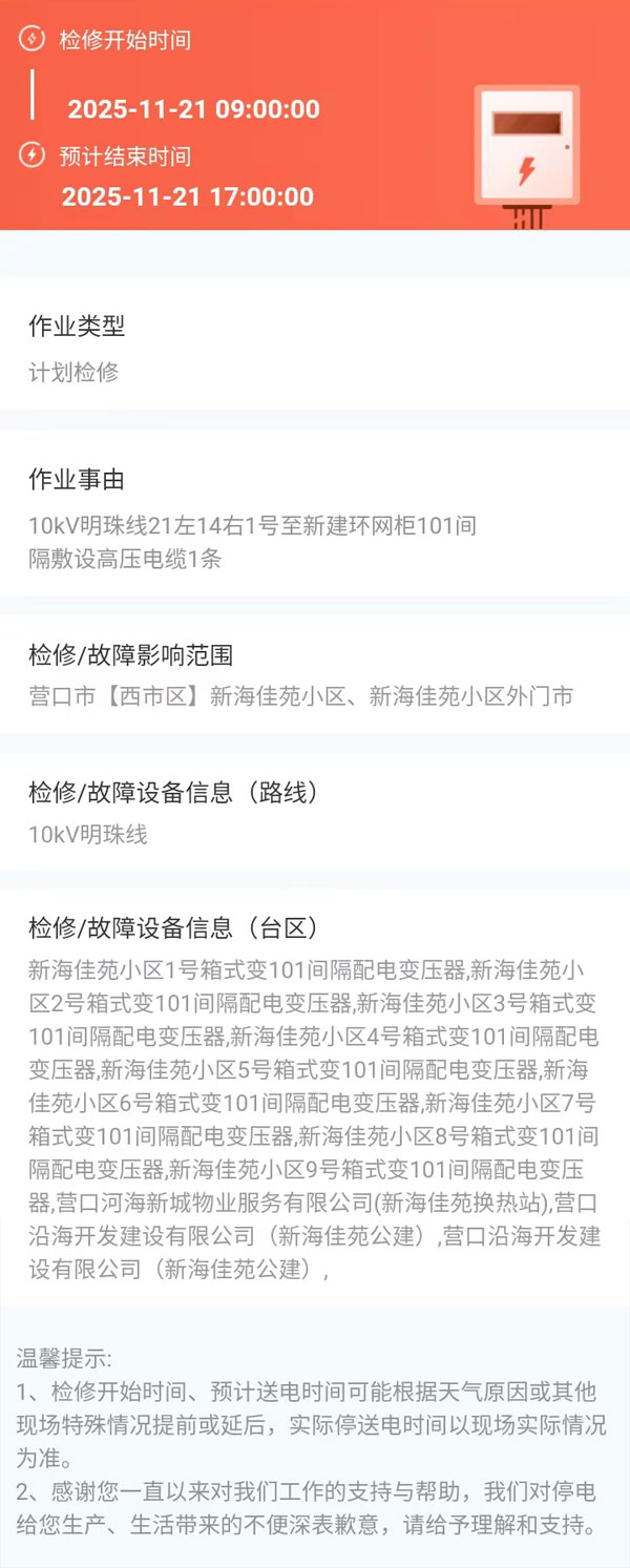 2025年11月21日 西市區(qū)電網(wǎng)檢修公告 |