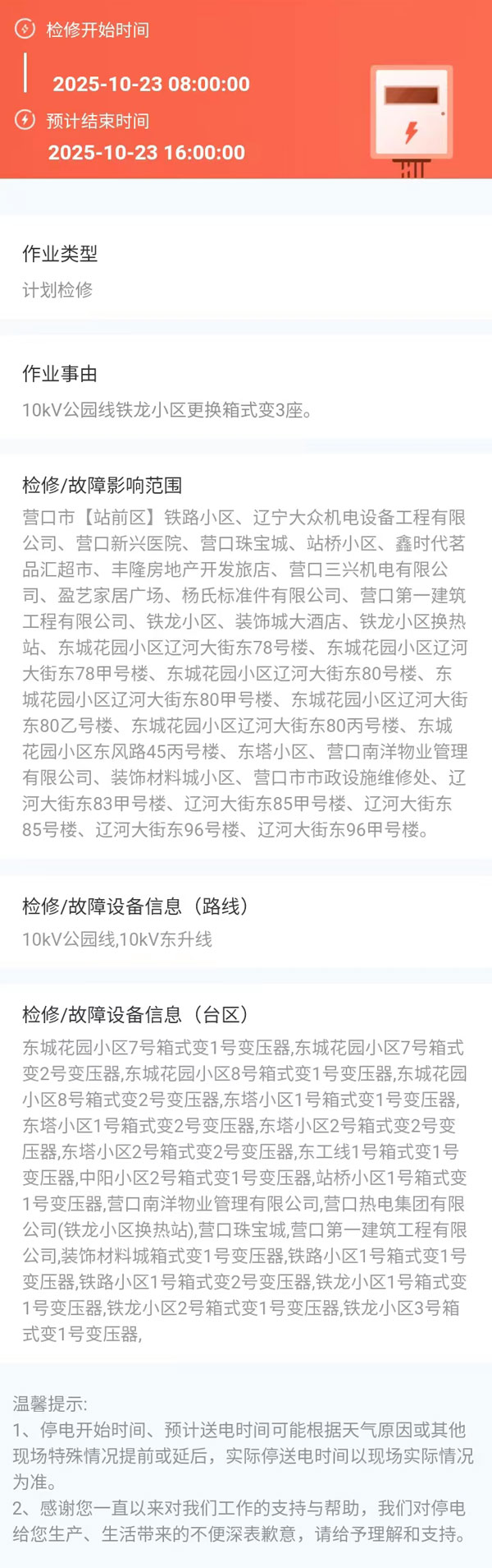 2025年10月23日 站前區(qū)電網(wǎng)檢修公告 |