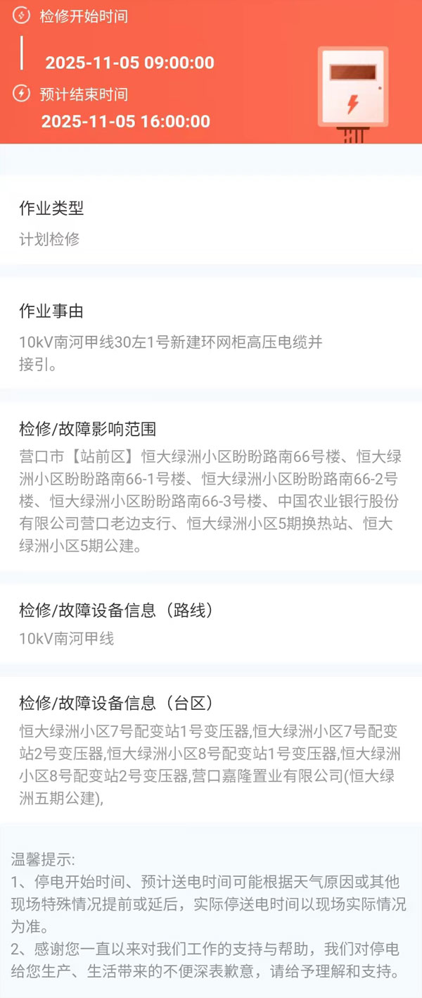2025年11月05日 站前區(qū)電網(wǎng)檢修公告 |