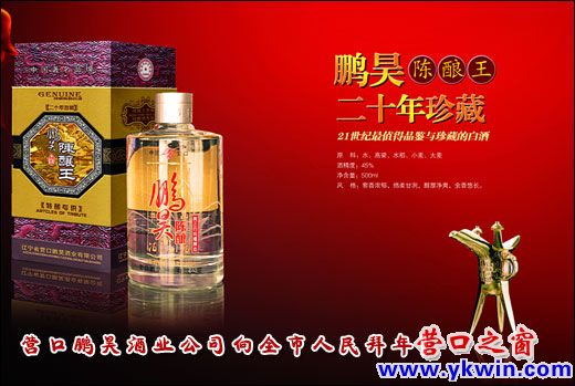 美酒飄香辭舊歲,祥龍迎新春納萬福。值此新春佳節(jié)之際,營口鵬昊酒業(yè)公公司總經(jīng)理何東攜全體員工向營口家鄉(xiāng)父老拜年!祝全市人民身體康健、家庭和美、龍年大吉,龍馬精神! 營口鵬昊酒業(yè)有限公司前身是營口新生農(nóng)場(chǎng)酒廠,始建于1958年,屬于國有獨(dú)資企業(yè)。公司是以“鵬昊”牌白酒和“八大散”牌白酒及其兩個(gè)品牌的系列酒的生產(chǎn)、銷售為主,是一個(gè)快速發(fā)展中年輕且充滿活力的企業(yè)。公司系統(tǒng)研制開發(fā)了鵬昊陳釀系列、八大散系列、鵬昊鴻運(yùn)道系列、禮品酒系列等幾十種系列產(chǎn)品。特別是“鵬昊”牌鵬昊陳釀白酒系列先后被授予“營口名牌產(chǎn)品”,“遼寧名酒”,“中國著名品牌”,同時(shí)“鵬昊”牌白酒系列產(chǎn)品被確認(rèn)為“中國優(yōu)質(zhì)白酒”。營口鵬昊酒業(yè)有限公司也先后被授予“遼寧市場(chǎng)優(yōu)秀示范信譽(yù)單位”;“遼寧可塑品牌100強(qiáng)企業(yè)”;“遼寧省十佳信譽(yù)知名企業(yè)”。