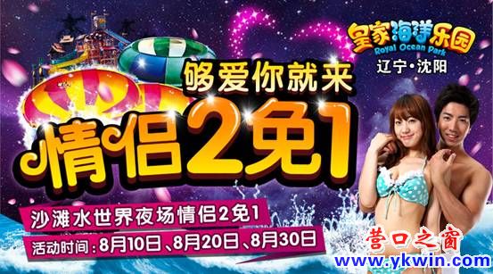 沈陽(yáng)皇家海洋樂園七夕特惠,八月情人派對(duì)甜蜜開啟,夠愛你就來!8月10日、20日、30日三天,1對(duì)情侶(1男1女即可)購(gòu)1張沙灘水世界夜場(chǎng)成人票即可同時(shí)入園暢玩!超值夜場(chǎng),異域狂歡,帶你分分鐘遇見愛情!