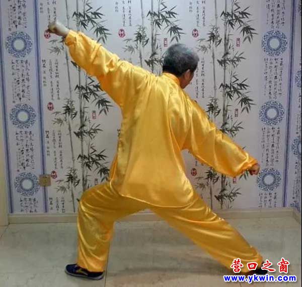 練法:接上式,雙腳交換位置,動(dòng)作(同上原地拗勢)。