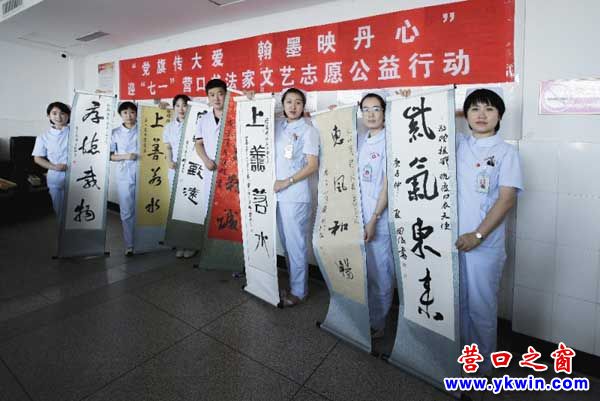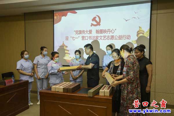 6月30日—7月1日,由中共營(yíng)口市委宣傳部,營(yíng)口市文聯(lián),營(yíng)口市衛(wèi)健委,營(yíng)口市書(shū)法家協(xié)會(huì),營(yíng)口市文藝志愿者協(xié)會(huì)聯(lián)合舉辦的“黨旗傳大愛(ài) 翰墨映丹心”迎“七一”書(shū)法志愿者公益行動(dòng)如期舉行。此次活動(dòng)中,營(yíng)口市書(shū)法家協(xié)會(huì)全國(guó)會(huì)員及主席團(tuán)成員創(chuàng)作了40多幅根據(jù)援鄂白衣天使心愿書(shū)寫(xiě)的書(shū)法作品,在“七一”黨的第九十九個(gè)生日到來(lái)之際,作為生日禮物贈(zèng)送給援鄂的醫(yī)護(hù)工作者,表達(dá)營(yíng)口文藝工作者的一片心意。藝德醫(yī)德手拉手心連心,共同慶祝黨的九十九歲華誕。