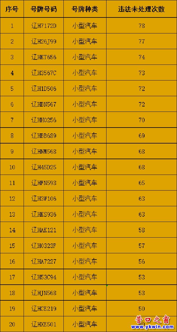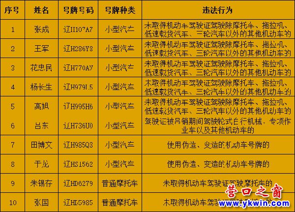 為不斷增強(qiáng)警示震懾效果,有效遏制交通違法行為,凈化道路交通環(huán)境,預(yù)防和減少道路交通事故的發(fā)生。營(yíng)口市公安局交通警察支隊(duì)聯(lián)合市文明辦、各新聞媒體將第九十次“交通違法曝光日”的有關(guān)信息通報(bào)如下: