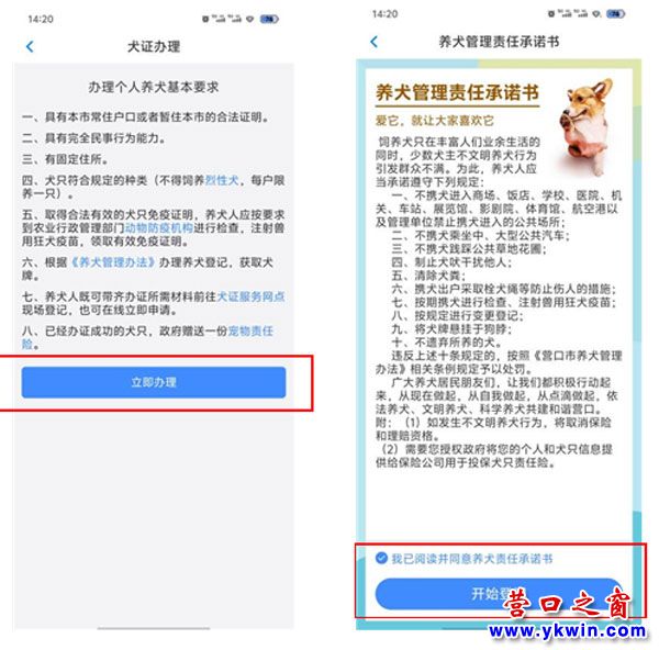 線上辦證:在手機應用市場里下載“犬衛(wèi)士”APP,注冊賬號并登錄后,選擇營口市,有詳細步驟和所需材料,點擊可查看詳細步驟和所需材料。