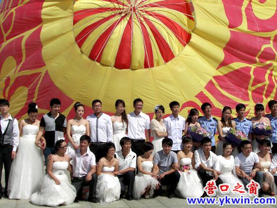 今日上午9時(shí),30對(duì)新人在營(yíng)口沿海產(chǎn)業(yè)基地明湖廣場(chǎng)舉行集體婚禮,以藍(lán)天白云為鑒許下自己對(duì)愛(ài)的誓言。