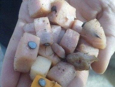“十一”長(zhǎng)假期間,營(yíng)口市的各個(gè)公園都迎來(lái)了大批的游客,秋高氣爽大家游園的情緒都很高,但是也出現(xiàn)了很多讓人心驚的“小地雷”,最近營(yíng)口的很多公園都出現(xiàn)了這種東西:一小塊食物上面扎著根釘子散落在很多公園,扎著釘子的有土豆、地瓜、胡蘿卜等。