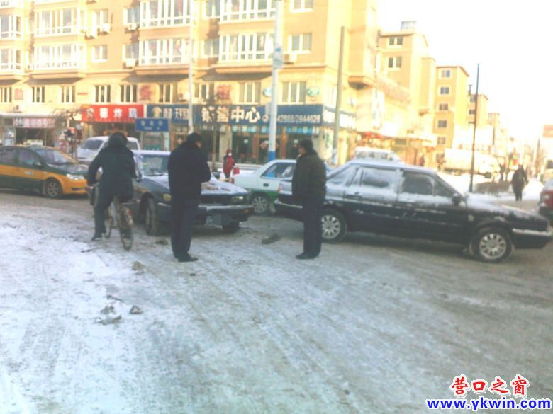 昨夜一場大雪,使營口市大街變成冰雪路面,給出行帶來了一些困難。