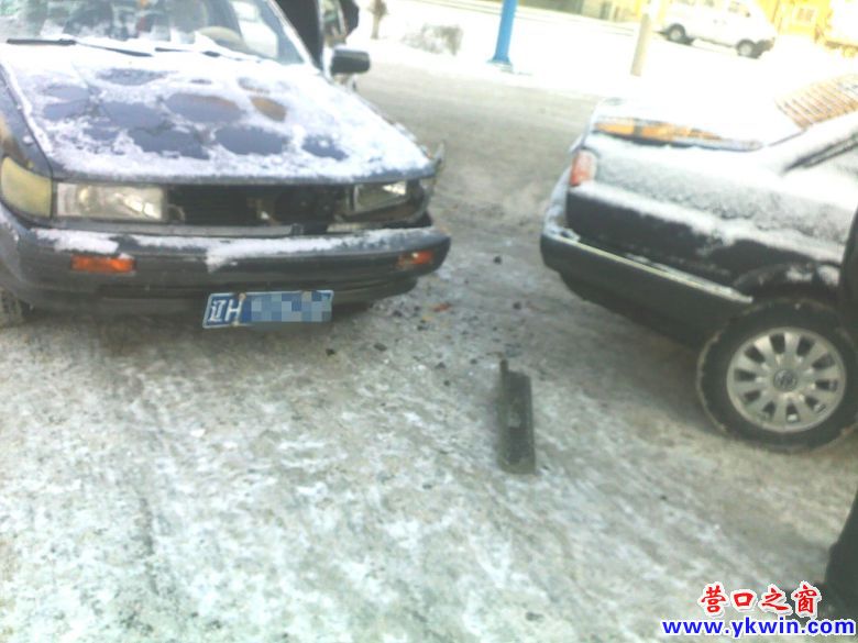 冰雪路面學府路口一小車追尾
