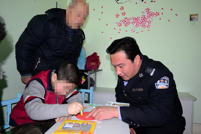營(yíng)口監(jiān)獄付科長(zhǎng)在指導(dǎo)小朋友繪畫