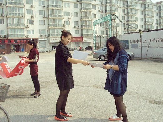 社區(qū)向過往居民發(fā)放就業(yè)信息